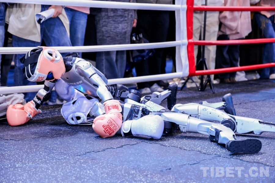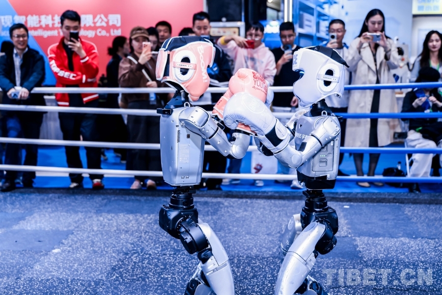 圖為兩位機器人拳手交替進攻,在靈活的站立攻防轉(zhuǎn)換中彰顯了最新的人工智能成果。