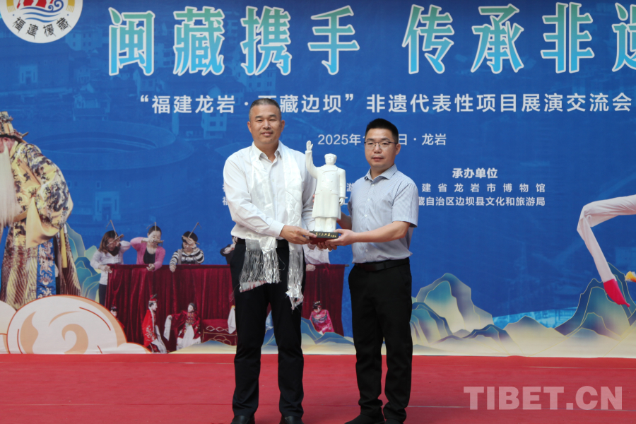 活動儀式上,閩藏兩地代表互贈特色紀念品。雙方一致表示,閩藏兩地因?qū)谠毓ぷ骶o密相連,非遺交流更是成為深化彼此合作的堅實橋梁。龍巖市與邊壩縣文旅行業(yè)將以此次活動為重要契機,攜手守護文化根脈,持續(xù)推動非遺文化的創(chuàng)造性轉(zhuǎn)化與創(chuàng)新性發(fā)展,讓“人民的非遺”真正實現(xiàn)“由人民共享”,讓雪域高原的獨特文化魅力被更多人知曉與喜愛。