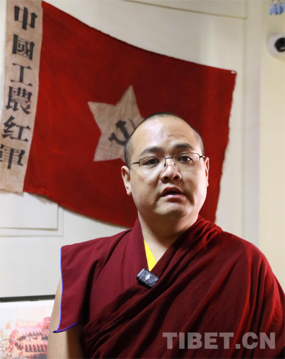 “這些紅色文物是慢慢累積起來的,甲央活佛總是跟我們說,紅色文物陳列室里的文物保存在寺院,但都是國家的?!遍L青說,“我們作為中華人民共和國的公民,作為一個僧人,在黨和國家的領導下,我們必須要愛國愛教?!?/p>