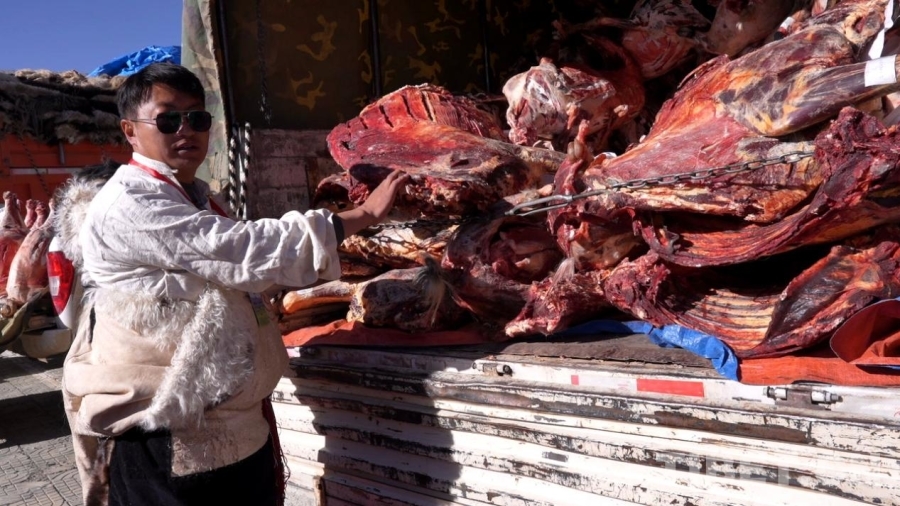 中國西藏網(wǎng)訊 12月15日上午10時許,西藏自治區(qū)那曲市色尼區(qū)物流園區(qū)農(nóng)貿(mào)市場內(nèi)人頭攢動。牧民們正忙碌地從貨車上卸下各類畜牧產(chǎn)品,為即將開幕的那曲市第十八屆畜產(chǎn)品展銷會做最后準(zhǔn)備。