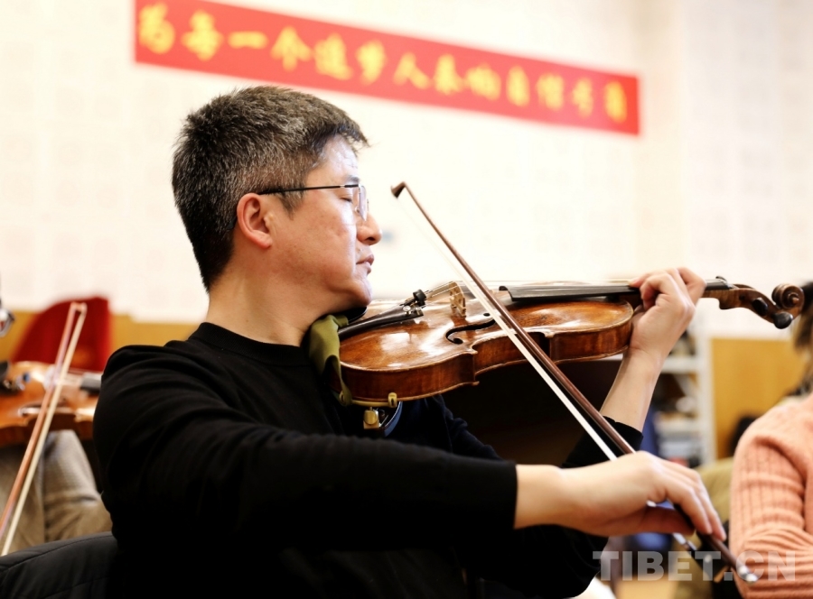圖為中央歌劇院交響樂(lè)團(tuán)首席杜玄正在排練大型交響組曲《夢(mèng)·路》 攝影:劉莉
