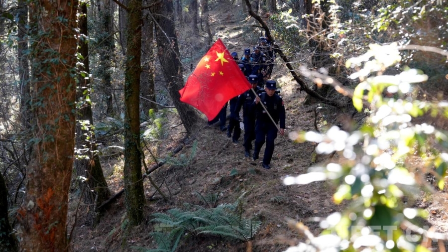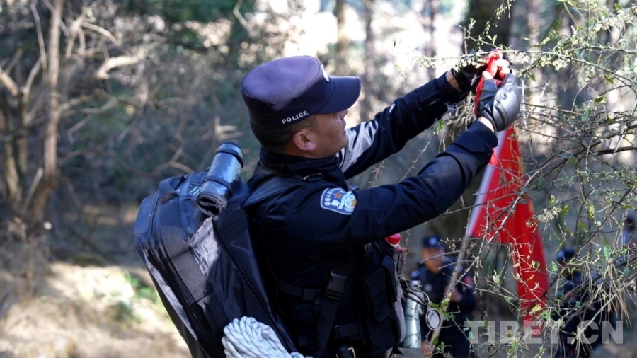 這一路,所謂好走的路,也只夠一人挺直身子通過。更多時候,我們必須手腳并用——腳下是打滑的碎石。手緊抓著巖縫里的草石,一步,一步,往前挪。巡邊途中的原始叢林間,無數(shù)或新或舊的紅繩系于冷杉枝頭,蜿蜒指向中尼邊境46號界樁的方向——這是民警們用腳步反復(fù)確認的“生命航線”。