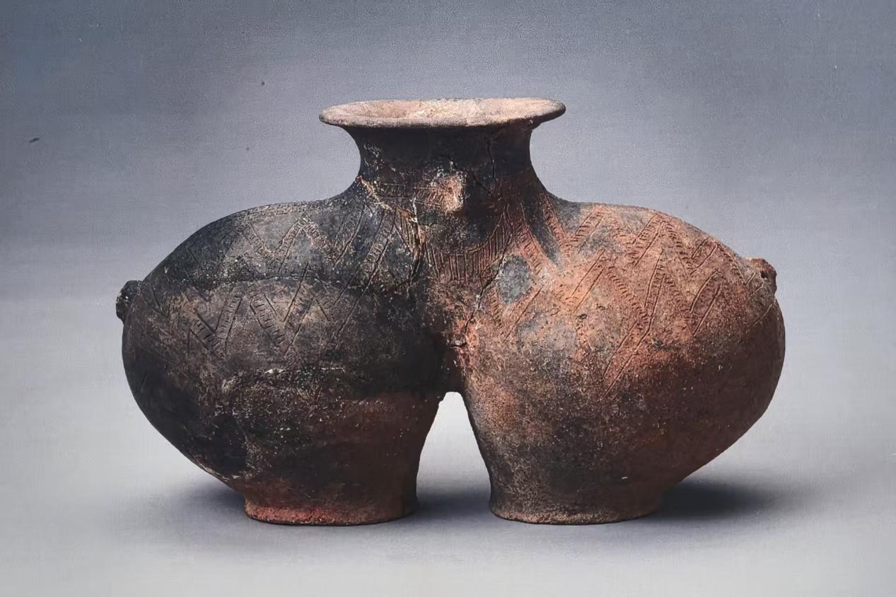 西藏昌都卡若遺址里出土了一只大約距今5000年的陶罐,它造型獨(dú)特、紋飾精美、色彩深邃,展現(xiàn)了高原先民極高的彩陶技藝,這便是如今西藏博物館的標(biāo)識(shí)原型——朱墨彩繪雙體陶罐。