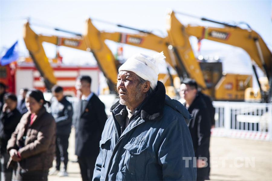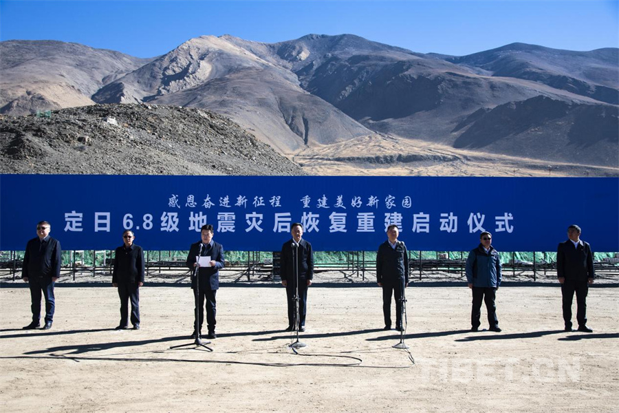 圖為定日縣6.8級(jí)地震8個(gè)整村推進(jìn)村莊災(zāi)后恢復(fù)重建項(xiàng)目啟動(dòng)儀式在定日縣長(zhǎng)所鄉(xiāng)古榮村舉行,標(biāo)志著災(zāi)后恢復(fù)重建工作啟動(dòng)。(攝于2025年3月3日)攝影:趙振宇