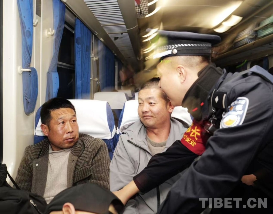 中國(guó)西藏網(wǎng)訊 1月20日,學(xué)生寒假返程高峰,青藏鐵路公安局西寧公安處乘警支隊(duì)在Z264次(廣州白云—拉薩)列車(chē)上,全力守護(hù)學(xué)子平安返鄉(xiāng)。同時(shí),乘警結(jié)合長(zhǎng)途出行特點(diǎn),以案說(shuō)法講解防盜技巧,緩解乘客旅途中的緊張情緒,讓千里歸途暖意融融。