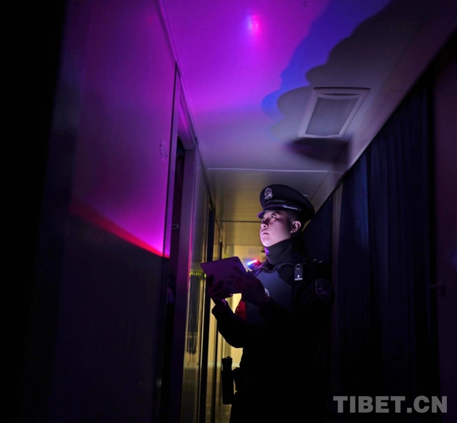 圖為夜間行車(chē)期間,乘警嚴(yán)格開(kāi)展人票證一致核查工作