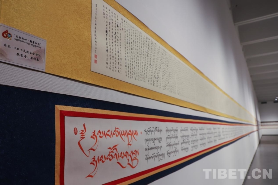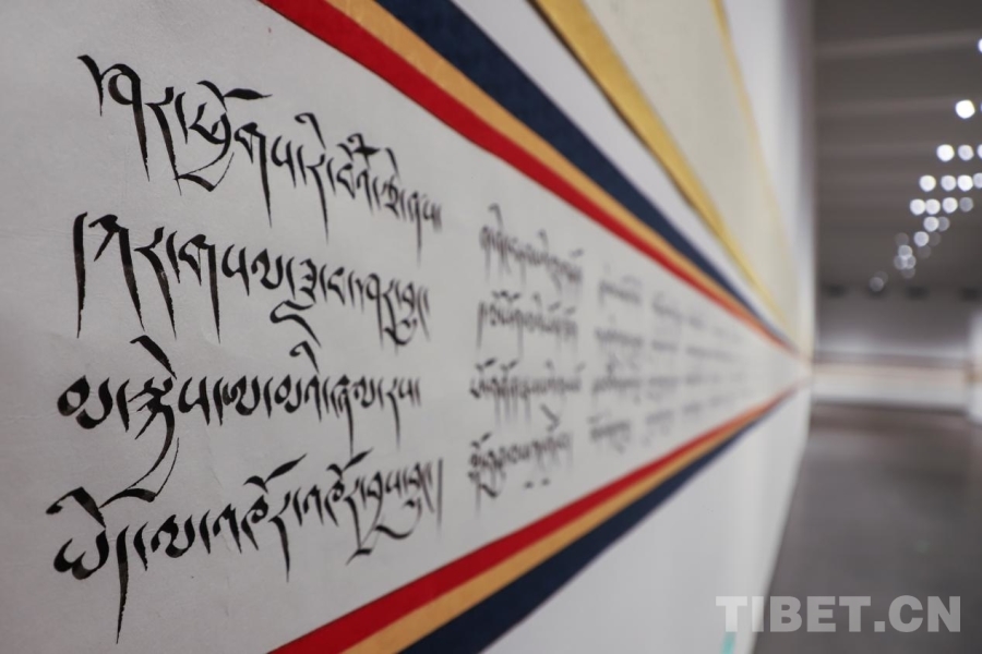 圖為“民族同心·翰墨和鳴”漢藏書法長卷藝術(shù)展現(xiàn)場 攝影:賈華加