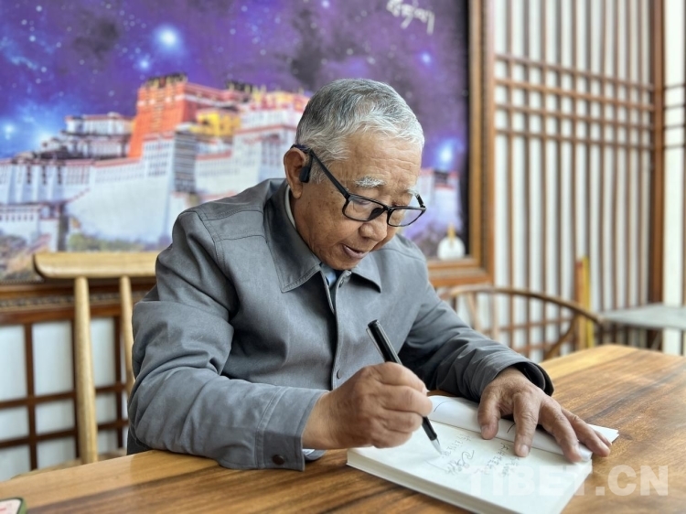 圖為2023年10月巴桑羅布在個(gè)人著作《倉(cāng)央嘉措略傳》新書(shū)發(fā)布會(huì)上為讀者簽名 攝影:德吉卓瑪