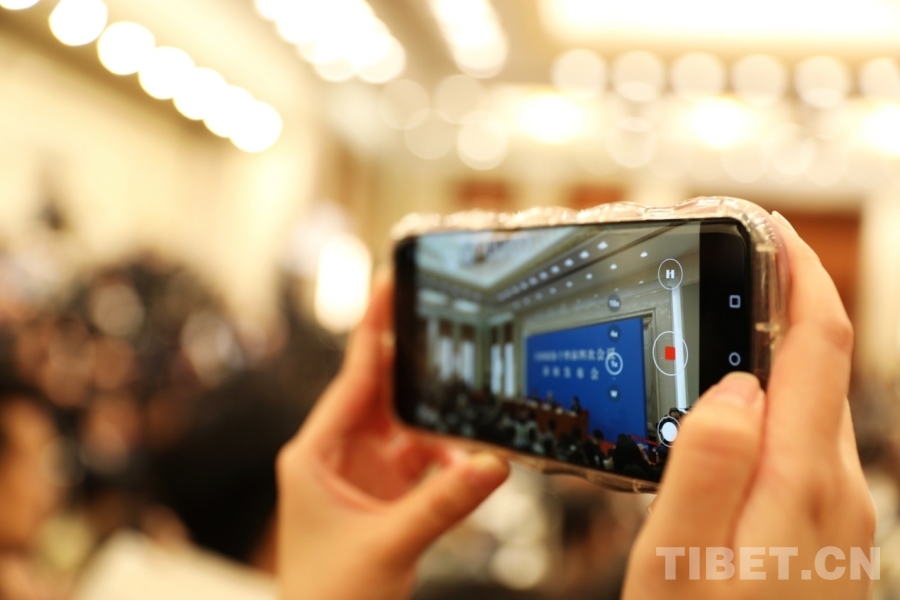 3月3日下午,全國政協(xié)十四屆四次會議新聞發(fā)布會現(xiàn)場,記者們使用即拍即傳設(shè)備與手機及時發(fā)布信息。攝影:劉莉