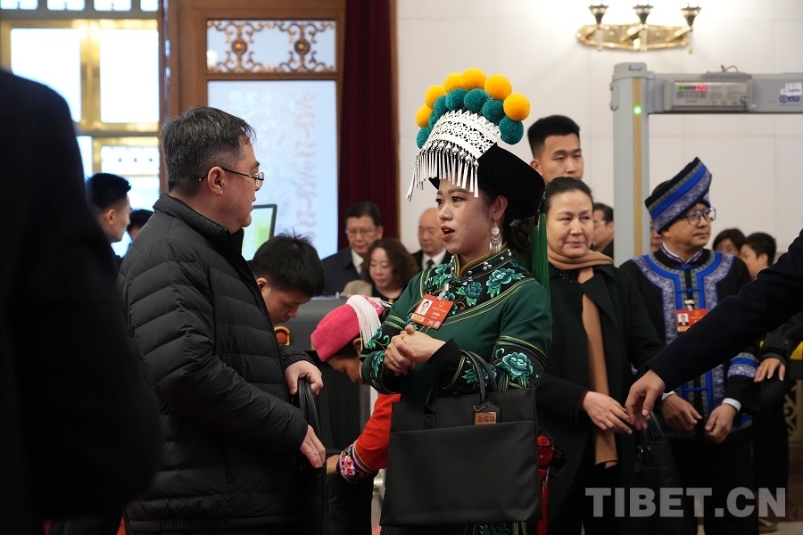 中國(guó)西藏網(wǎng)訊 3月5日上午,十四屆全國(guó)人大四次會(huì)議在人民大會(huì)堂開(kāi)幕。開(kāi)幕會(huì)前,身著民族服飾的人大代表們步入會(huì)場(chǎng),接受媒體采訪。(中國(guó)西藏網(wǎng) 記者/邊子捷 劉莉 編輯/王妍丹)