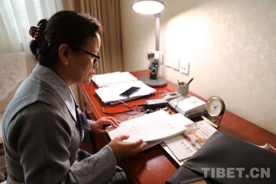 3月5日下午,在代表駐地,全國人大代表、西藏自治區(qū)高原生物研究所植物組織培養(yǎng)研究室主任尼珍正在工作。當日上午9時,十四屆全國人大四次會議在人民大會堂舉行了開幕會。