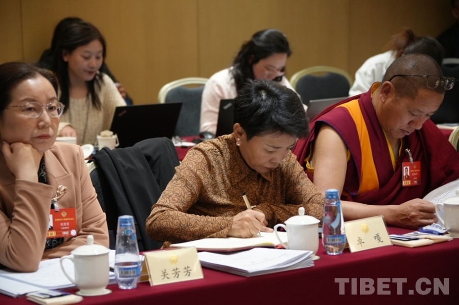 2026兩會(huì)期間卓嘎(前中)在少數(shù)民族界小組會(huì)議上 攝影:楊眉笑