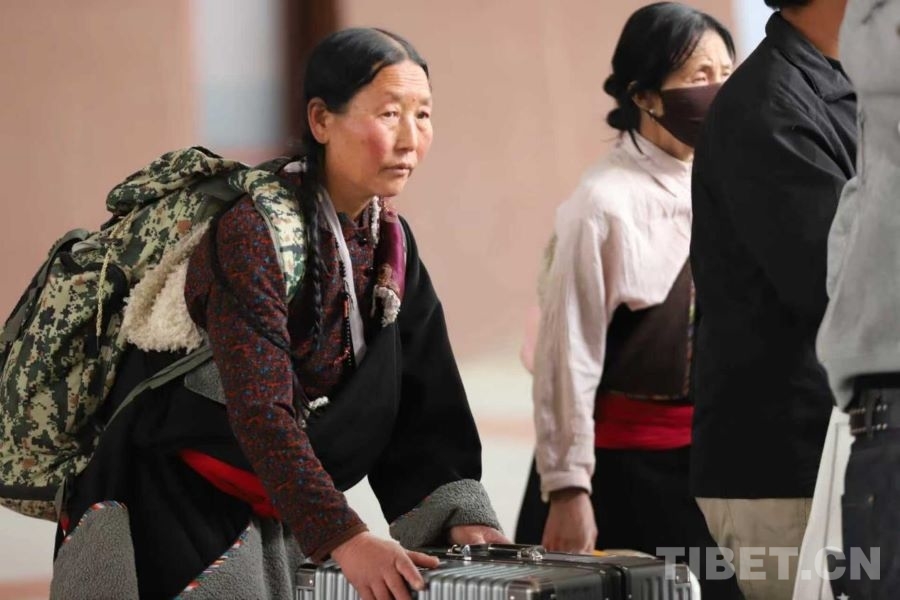 旅客們在拉薩火車站乘車出行