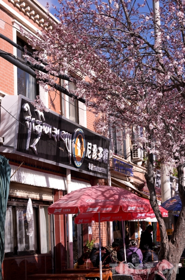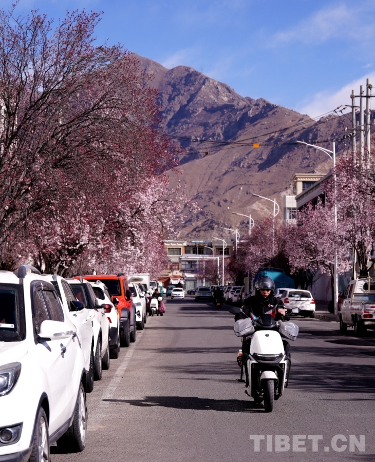 放眼望去,一樹樹春花爭相綻放,在春日的暖陽下顯得格外耀眼奪目。在這條被春花裝扮一新的街道上,隨處可見市民悠然自得的身影——有人漫步行走在花間道路,沉醉于滿目春色;有人靜坐在茶館門外的桃花樹下,一邊品味甜茶的醇香,一邊享受春日的愜意時光。花影、人影與街景交相輝映,處處洋溢著春日拉薩的生機與浪漫。