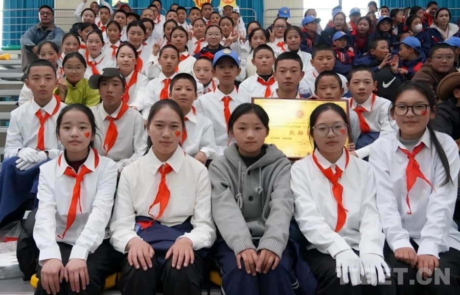 色尼區(qū)第二(杭嘉)中學舉辦紀念西藏民主改革67周年文藝活動,活動結束后獲獎班級合影 來源:色尼融媒