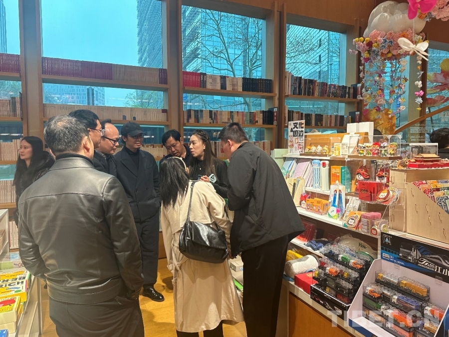 新東方工作人員向色尼區(qū)考察團介紹文創(chuàng)產(chǎn)品