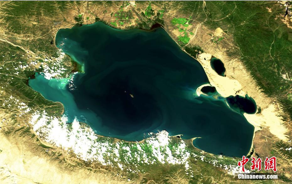 圖為2019年8月17日,在多重力量作用下,青海湖以海心山為圓心,形成環(huán)流。青海省地質(zhì)調(diào)查院 供圖