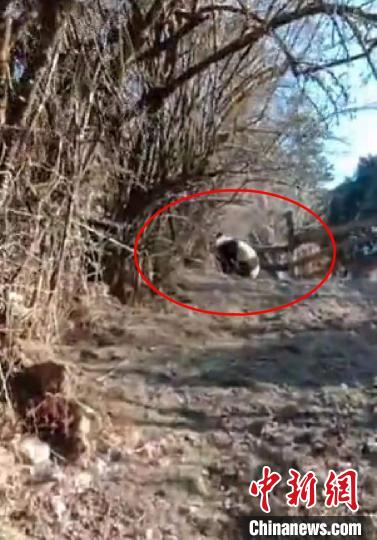 野生大熊貓往山上跑去。受訪者 供圖