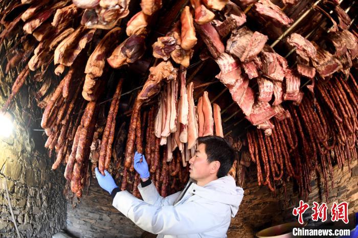 2020年春節(jié)將至,“云端餐廳”的房檐下,掛滿了香腸臘肉、牦牛肉干、風(fēng)干土雞,這都是村民準(zhǔn)備銷售的年貨。