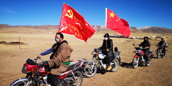 宣傳隊騎著摩托車在宣傳途中。(黃南州委組織部供圖)