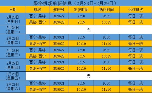 果洛機(jī)場(chǎng)航線恢復(fù)首周航班時(shí)刻表