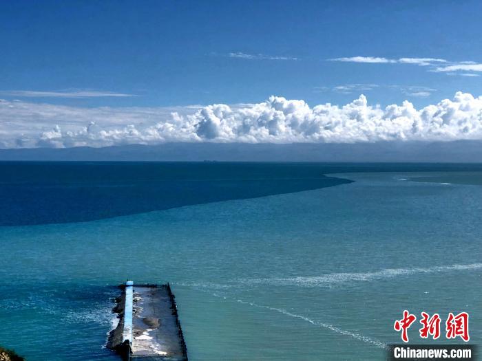 資料圖為青海湖水體因鹽度不同呈現(xiàn)不同藍色。羅云鵬 攝