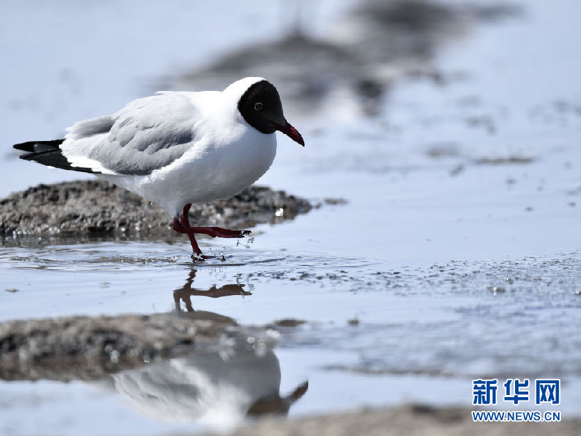 這是4月8日在青海省海北藏族自治州剛察縣青海湖畔拍攝的棕頭鷗。新華社發(fā)(潘彬彬 攝)