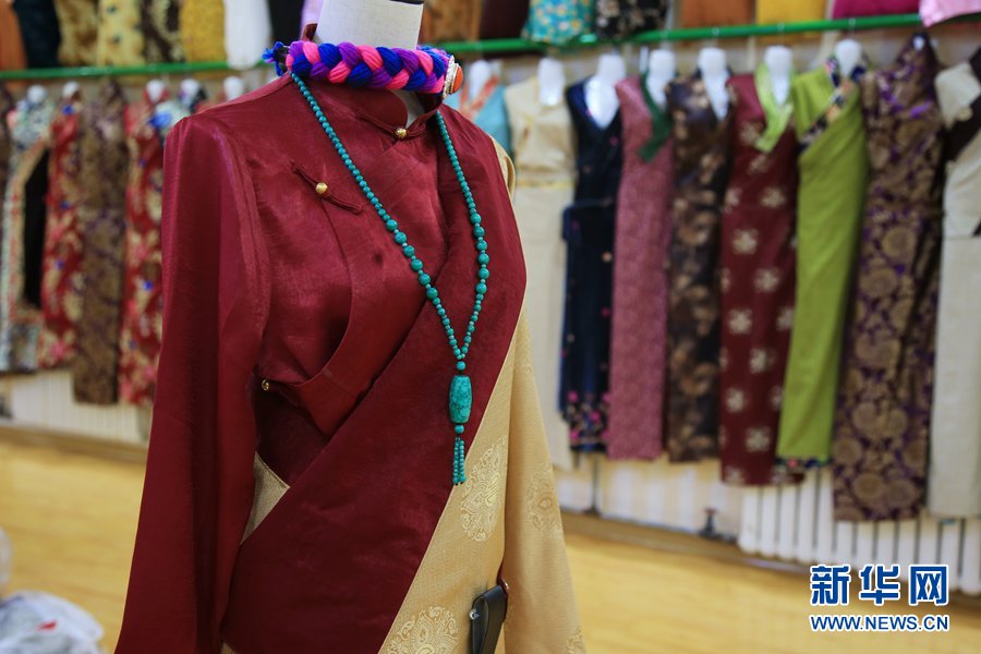 圖為諾布嶺民族服飾有限公司產(chǎn)品展覽室一角。新華網(wǎng) 馬洪婷 攝