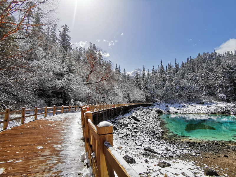 日前,四川九寨溝景區(qū)迎來(lái)一場(chǎng)瑞雪,整個(gè)景區(qū)銀裝素裹,遠(yuǎn)處層巒疊嶂的山峰、松樹、紅色的楓葉與皚皚白雪完美融合倒映在水中。雪后九寨溝,宛若遺落人間的冰雪王國(guó)。[詳細(xì)]