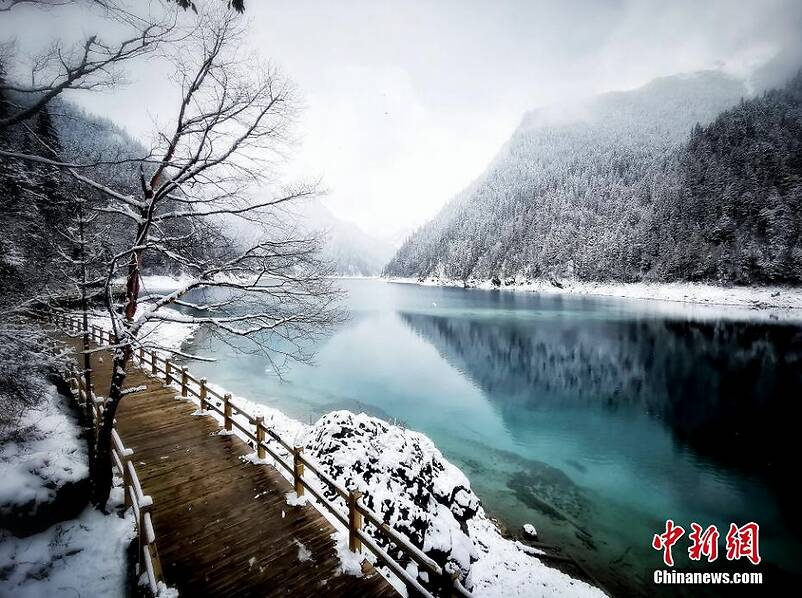 四川九寨溝連續(xù)三天下雪 宛若童話世界