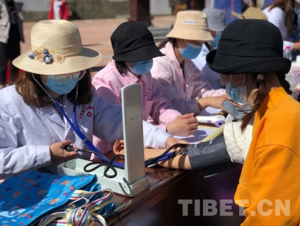 圖為醫(yī)務(wù)人員為群眾測量血壓
