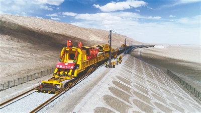 為了如期推進項目建設(shè),目前,格庫鐵路(新疆段)施工人員正以每天鋪軌1.5公里的速度向前推進,預(yù)計7月份將完成格庫鐵路(新疆段)全線鋪軌施工任務(wù),10月份具備全線開通條件。