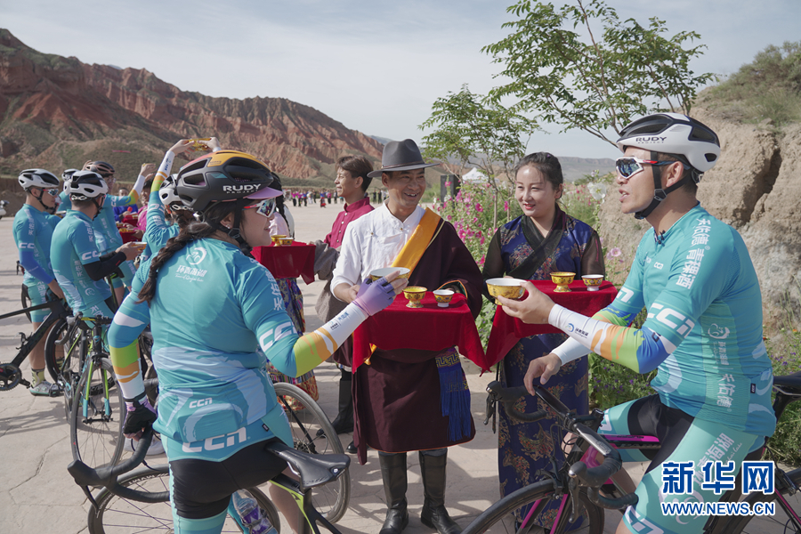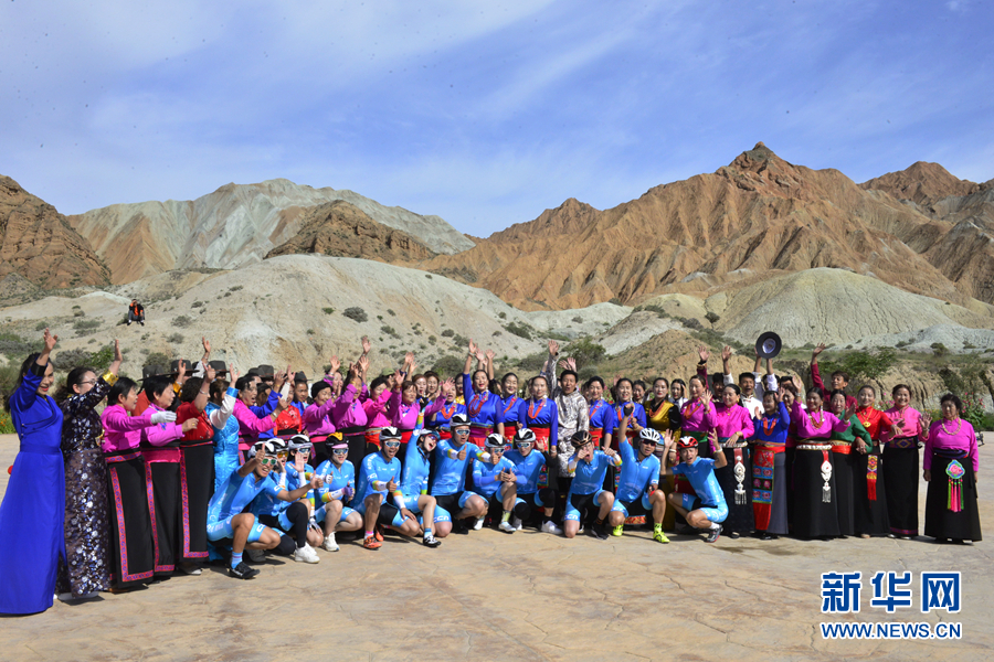 圖為“挑戰(zhàn)2020”環(huán)湖精英行“網(wǎng)紅”團(tuán)隊(duì)在貴德國(guó)家地質(zhì)公園準(zhǔn)備騎行。新華網(wǎng) 魚(yú)昊 攝