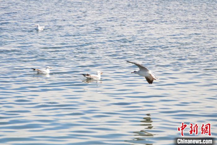 資料圖為青海湖湖面上的鳥類。魯?shù)り?攝