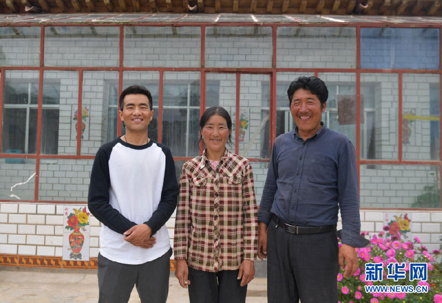 8月13日,尤拉太(左一)與父母在夏塘村的家中合影。新華社記者 張龍 攝