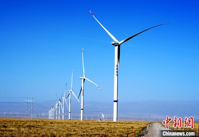 驅(qū)車近3小時(shí)后,中新社記者站在青海省海南藏族自治州“青豫特高壓外送基地”電源配置項(xiàng)目1300兆瓦風(fēng)電場,放眼望去,一臺臺矗立的風(fēng)機(jī)綿延數(shù)百公里。