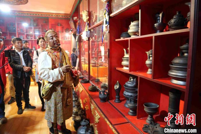 圖為青海省玉樹(shù)藏族自治州囊謙縣的國(guó)家級(jí)“非遺”傳承人白瑪群加介紹藏族黑陶手藝。張?zhí)砀?攝