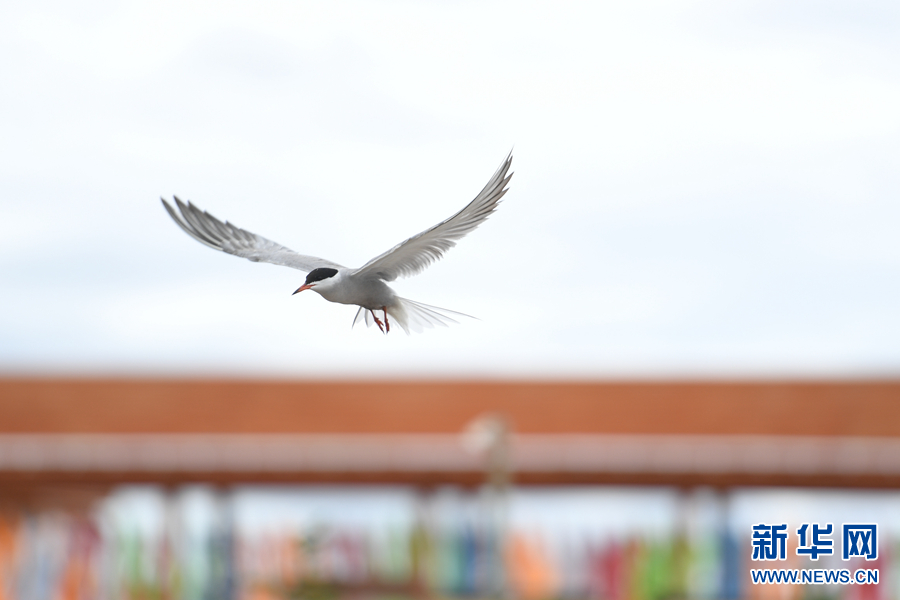 一只普通燕鷗在青海湖周邊飛翔。(資料圖)新華網(wǎng) 潘彬彬 攝
