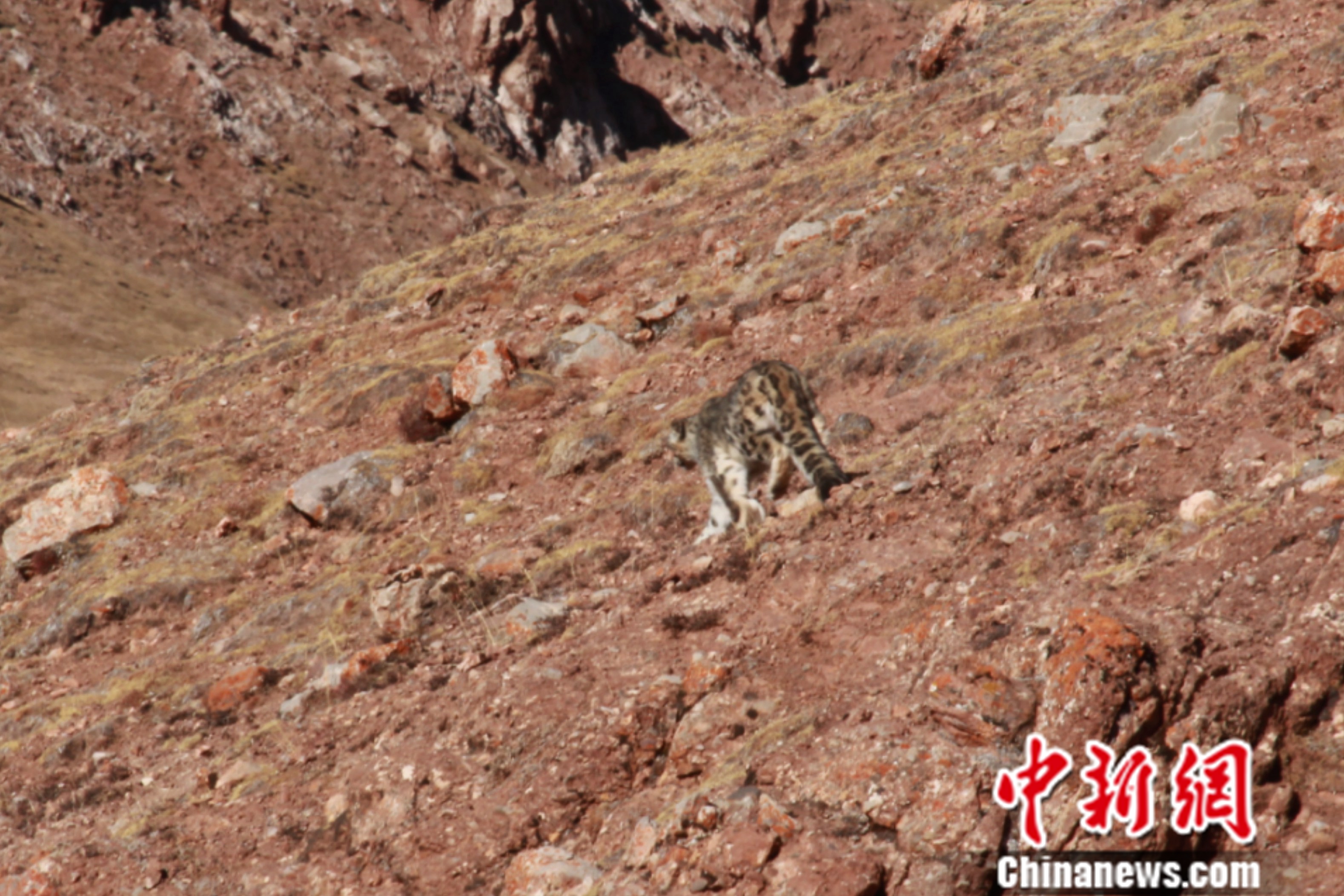 長(zhǎng)江源發(fā)現(xiàn)罕見棕黃色雪豹 專家:非雪豹、金錢豹“結(jié)合體”