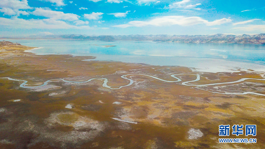 航拍:黃河源頭冬格措納湖 冰雪消融展風(fēng)姿