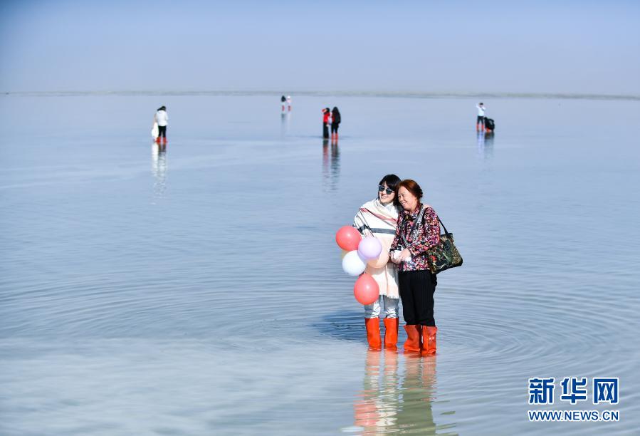 游客在茶卡鹽湖“天空之鏡”景區(qū)游玩(9月23日攝)。新華社記者 張龍 攝