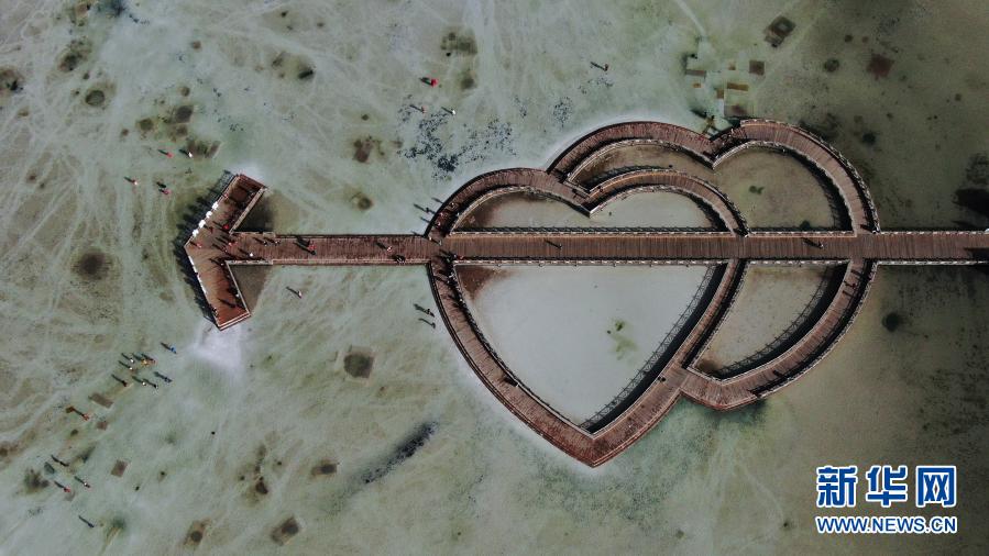 這是9月23日拍攝的茶卡鹽湖“天空之鏡”景區(qū)一角(無(wú)人機(jī)照片)。新華社記者 張龍 攝