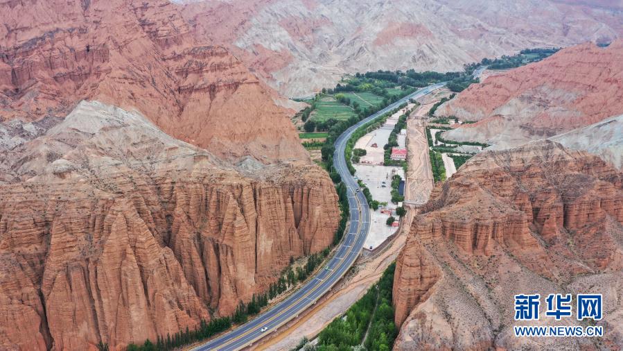 這是6月15日拍攝的位于青海貴德縣境內(nèi)的丹霞地貌(無(wú)人機(jī)照片)。新華社記者 吳剛 攝