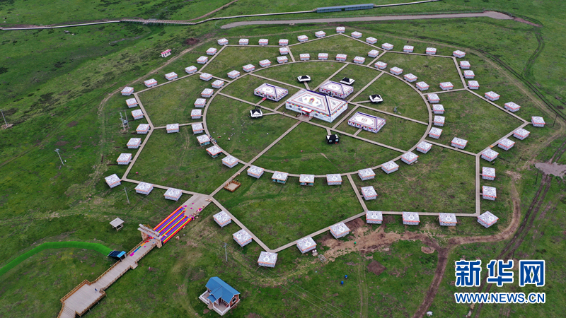 這是2020年6月20日拍攝的甘南藏族自治州碌曲縣尕海鎮(zhèn)尕秀村帳篷城景區(qū)(無人機(jī)照片)。新華社記者 陳斌 攝