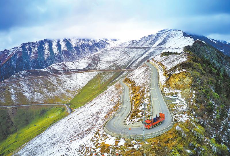 夾金山盤旋的山路。黃剛 攝