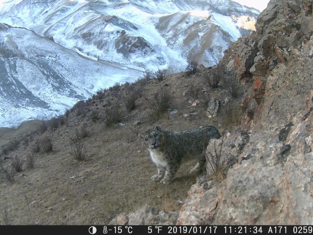 2019年1月17日,在祁連山國家公園青海片區(qū),紅外相機拍攝到的雪豹照片。