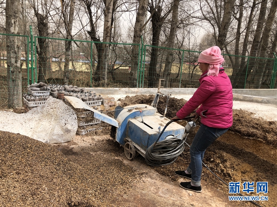 圖為廖玉梅正在攪拌羊肚菌培養(yǎng)基質(zhì)。新華網(wǎng) 魚昊 攝