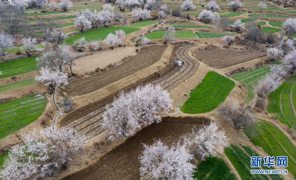 4月3日,在得榮縣白松鎮(zhèn)奪松村,當(dāng)?shù)夭刈迦罕娫诖焊o(wú)人機(jī)照片)。新華社記者 江宏景 攝