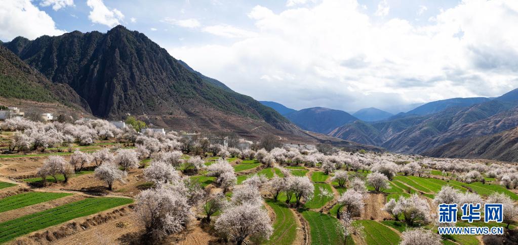 4月3日在得榮縣白松鎮(zhèn)日當(dāng)村拍攝的景色。新華社記者 江宏景 攝