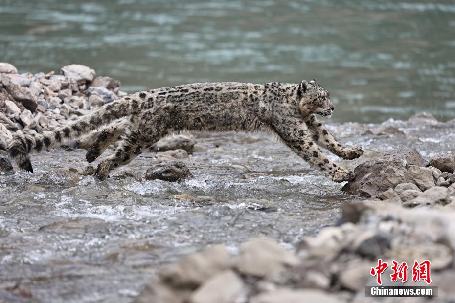 圖為渡河雪豹展現(xiàn)靈動(dòng)身姿。張蓉芝 攝